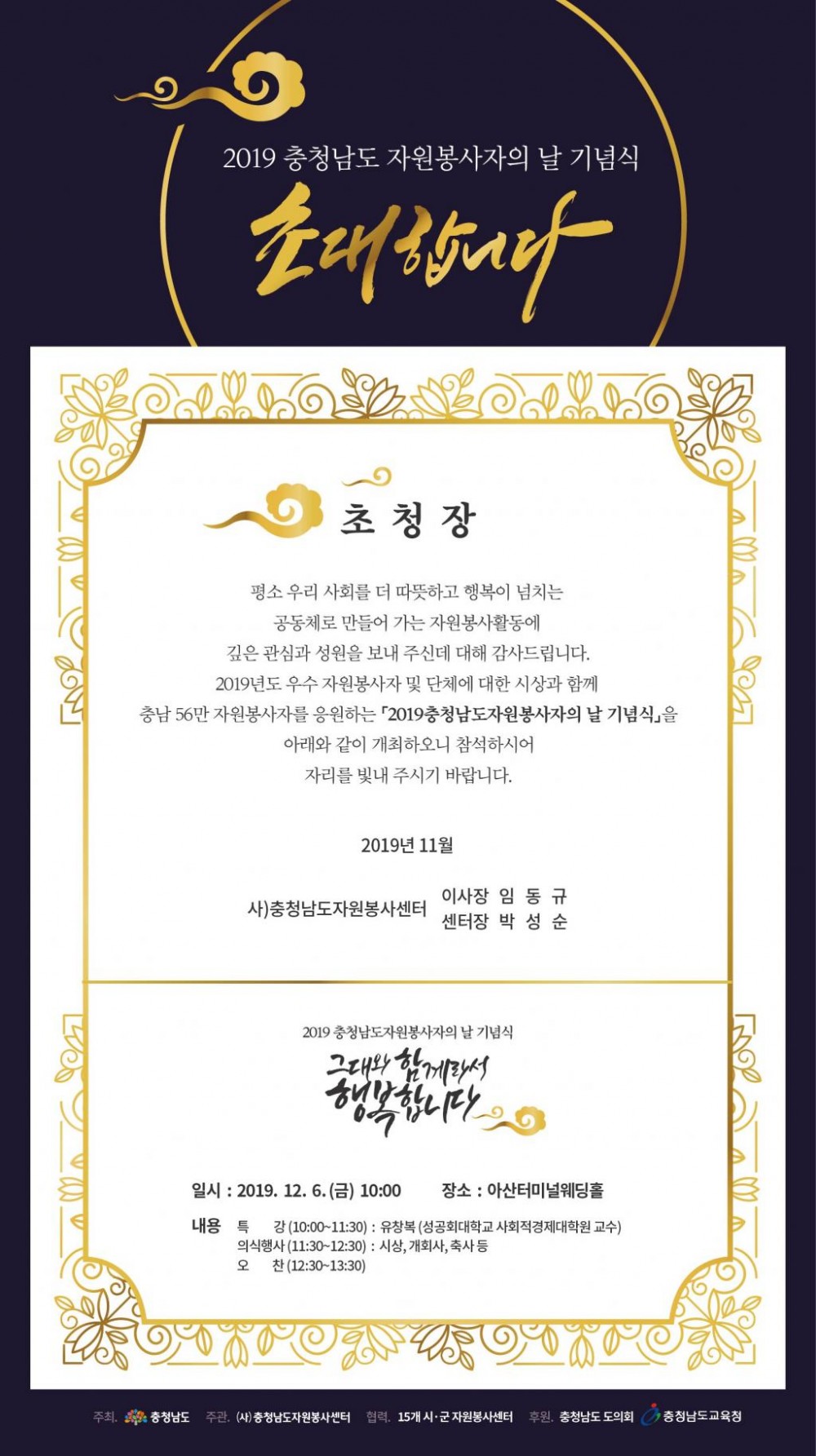 2019 충청남도 자원봉사자의 날 기념식에 초대합니다.