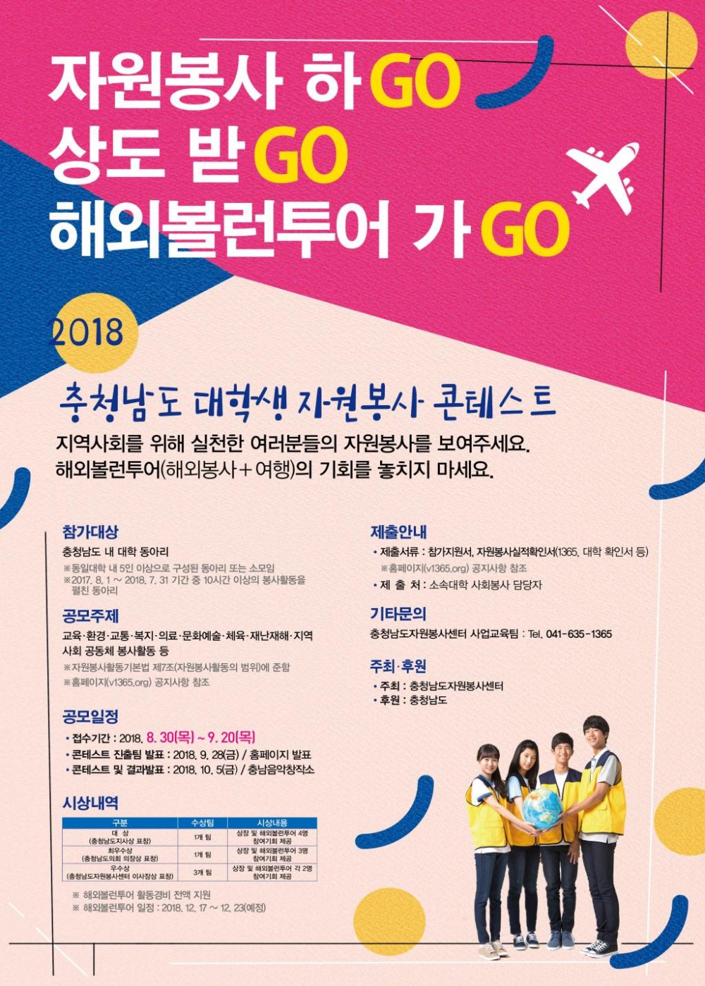 2018 대학생 자원봉사 콘테스트에 많은 관심과 신청 바랍니다.
