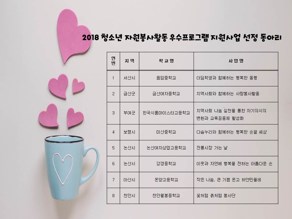 2018 청소년 자원봉사활동 우수프로그램 지원사업 선정 결과