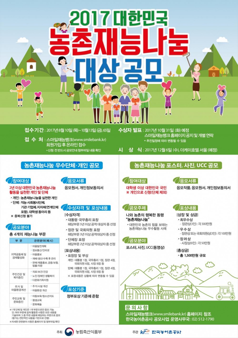 2017년 대한민국 농촌재능나눔 대상 수상자 모집공모 알림
