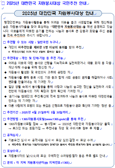 2025년 대한민국 자원봉사대상 국민추천 안내