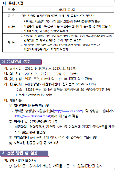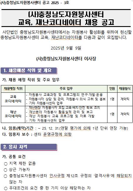 (사)충청남도자원봉사센터 (교육,재난)코디네이터 채용 공고