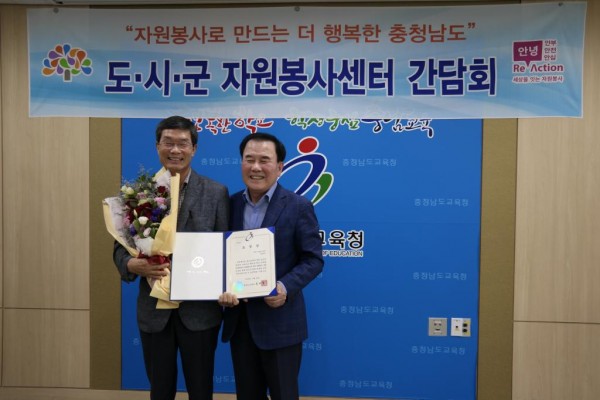 특히 이번 자리에서는 김지철 충청남도 교육감이 올해 퇴임한 박광순 전임 아산시자원봉사센터장과 김찬수 전임 보령시자원봉사센터장에게 자원봉사 문화 활성화에 이바지한 공로에 감사하며 표창장을 수여하였습니다.