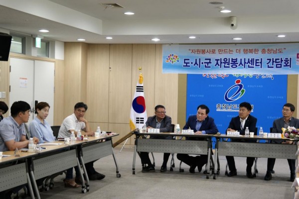 7월 22일 (월) 오전 10시, 충청남도 교육청 회의실에서 충남교육감의 초청으로 충청남도 각 시군 자원봉사센터 센터장 및 관리자가 참석하여 청소년 자원봉사 활성화를 위한 간담회가 열렸습니다.