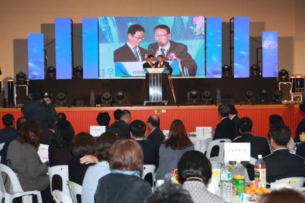 도 및 아산시 자원봉사센터 주관으로 열린 이날 행사에는 허승욱 도 정부부지사와 윤석우 충남도의회 의장, 김환식 충남도 부교육감, 복기왕 아산시장과 양대 체전의 성공개최 주역인 자원봉사자와 단체 회원 등 600여 명이 참석했습니다.