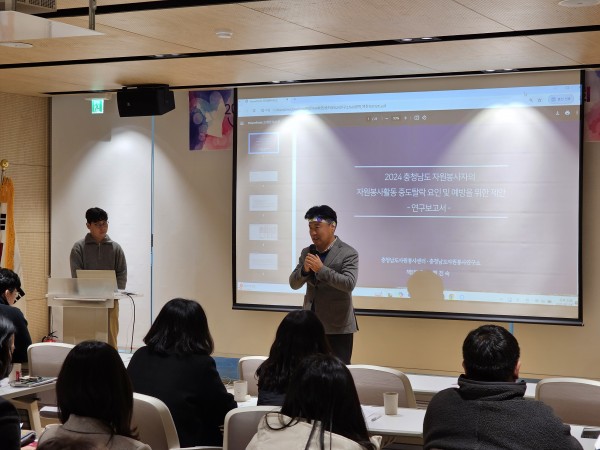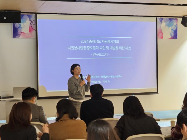 '충청남도 자원봉사자의 자원봉사활동 중도탈락 요인 및 예방을 위한 제언' 연구 결과 보고회를 진행했습니다.
