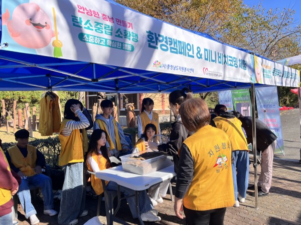 청양군자원봉사센터와 칠갑산 장승공원 일대에서 관광객을 대상으로 탄소중립활동에 대한 인식을 확산하고자