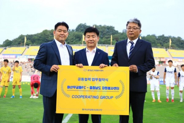 박성순 도자원봉사센터장은 협약 직후 소속 선수단을 격려하며, “아산무궁화프로축구단 소속 선수들이 평소 축구장 밖에서 펼치는 자원봉사의 활약상을 잘 알고 있다고 전하며, 앞으로 자원봉사센터도 적극 협력하겠다.”고 전했다.