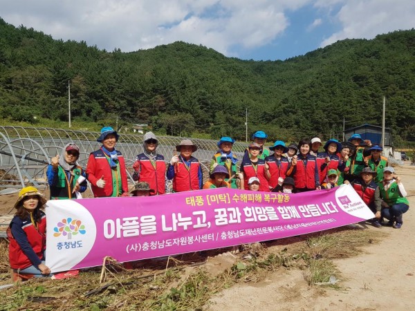 충청남도자원봉사센터(센터장 박성순)는 8일 태풍 ‘미탁’의 영향으로 수해를 입은 경북 울진지역을 찾아 피해복구 자원봉사활동을 펼쳤다.