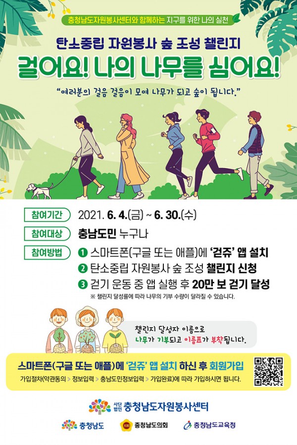 제26회 환경의 날을 기점으로 본격 시작되는 탄소중립 자원봉사 숲 조성사업은 도민들이 생활 속 걷기 운동을 통해 숲 조성에 필요한 나무를 쉽게 기부하고, 나무심기 활동에 동참할 수 있도록 마련되었다.